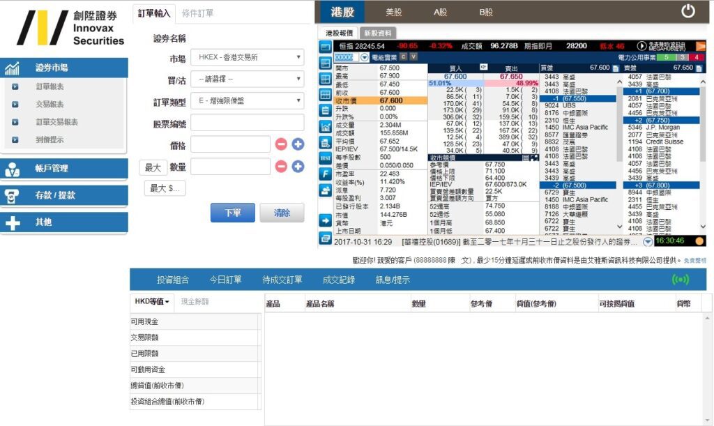 A: Currently, our system provides securities trading of Hong Kong stocks, warrants, CBBCs and ETFs etc.